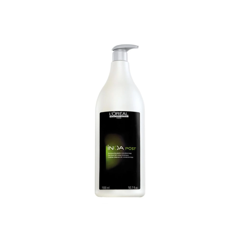 L’Oreal champú Inoa Post de1500 ml ,desarrollado como un champú específico para después de la aplicación de coloración Inoa. Inoa post es un champú que elimina los residuos para así aumentar la belleza de los cabellos recién coloreados y sella la cutícula para que el color inoa duré más tiempo.